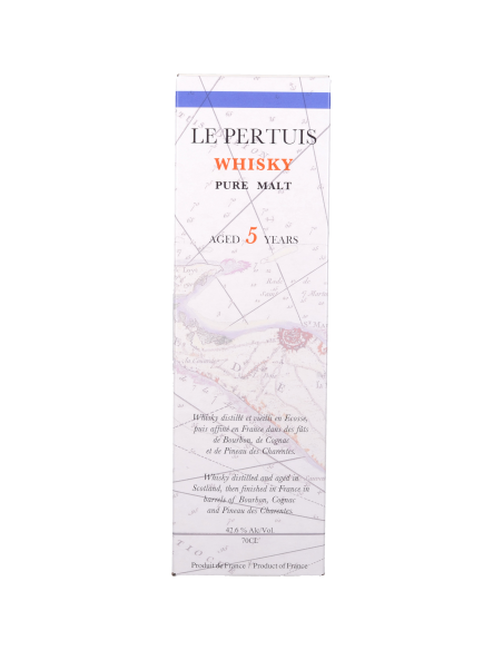 En bouche, Le Pertuis Pure Malt est généreux, élégant, délicat avec ses arômes floraux et fruités. Finale légèrement fumée et iodée.