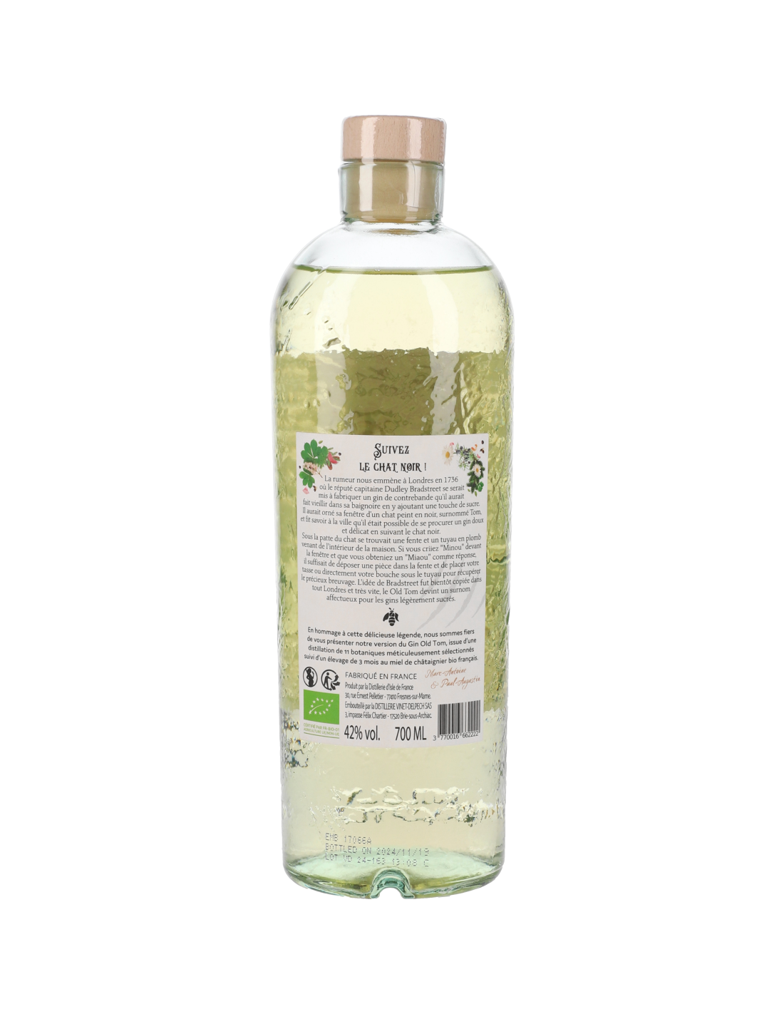 Un Gin légèrement plus sucré que le London Dry classique, élaboré à partir de cire d'abeille et de 11 botaniques, comme le cône de sapin des Pyrénées, la cannelle Cassia Sauvage ou la camomille Sauvage.
