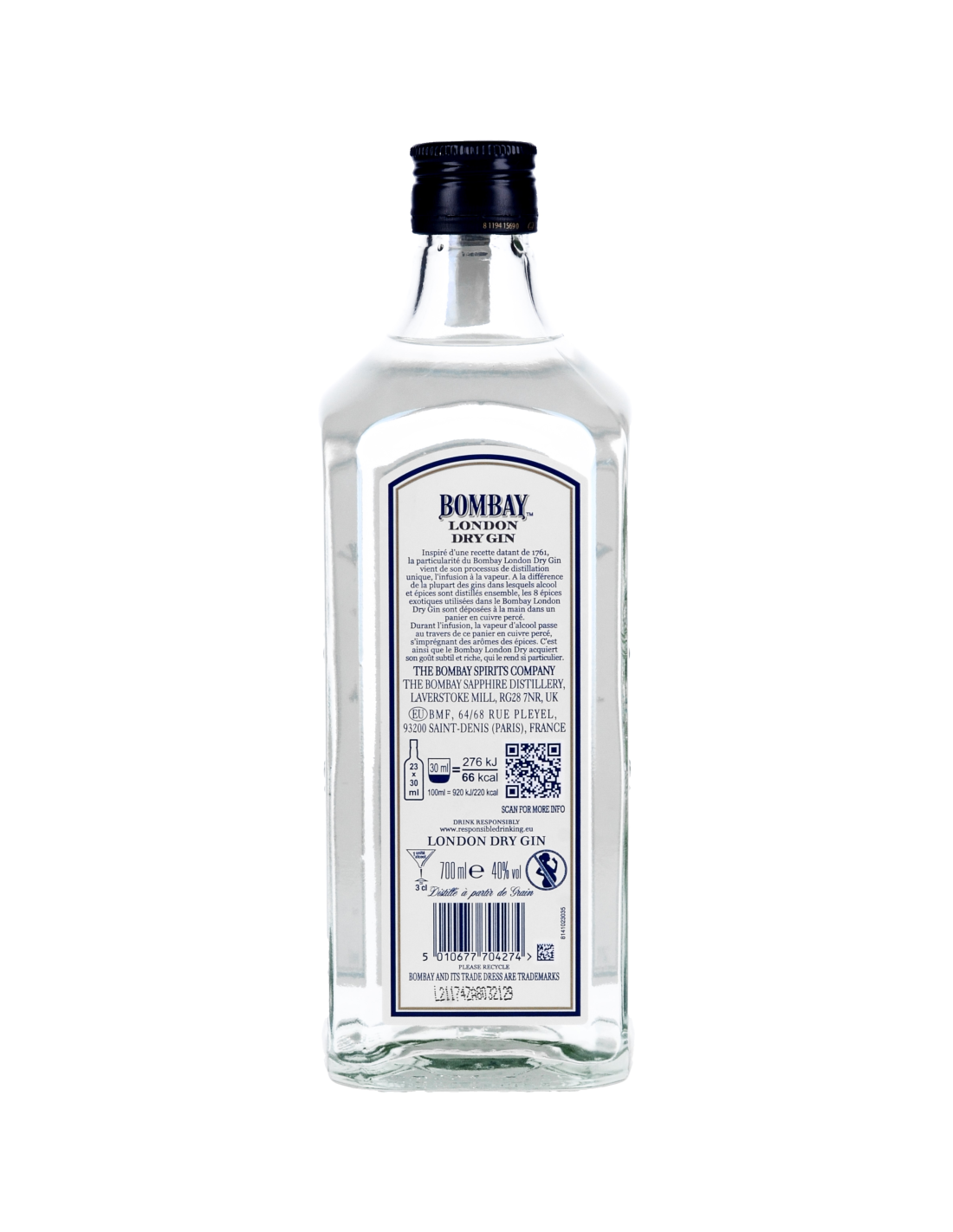 Le Gin Bombay Original est une eau-de-vie parfumée au genièvre aux extraits d'amande, d'écorce d'orange, de réglisse, d'iris, d'angélique, de coriandre, de canelle, de cubèbe et de maniguette. Un grand classique rentrant dans la composition de nombreux cocktails.