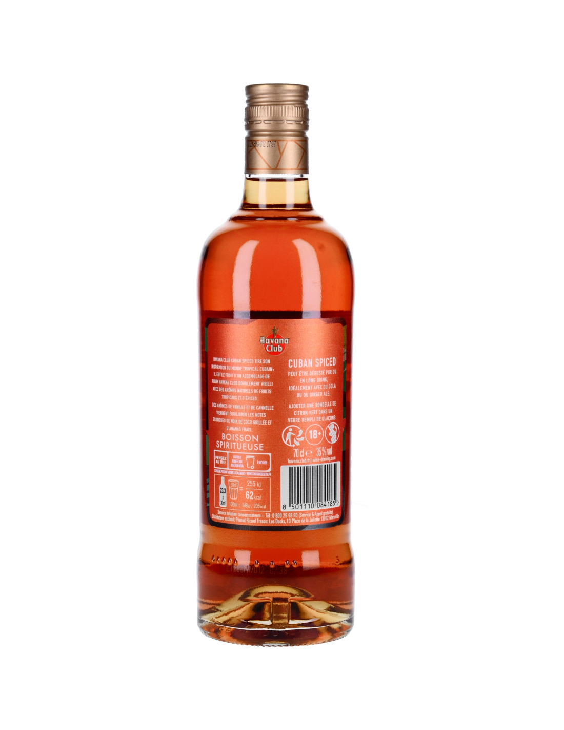 HAVANA CLUB CUBAN SPICED TIRE SON INSPIRATION DU MONDE TROPICAL CUBAIN. IL EST LE FRUIT D’UN ASSEMBLAGE DE BASES DE RHUM HAVANA CLUB AVEC DES ARÔMES NATURELS DE FRUITS TROPICAUX ET D’ÉPICES.
