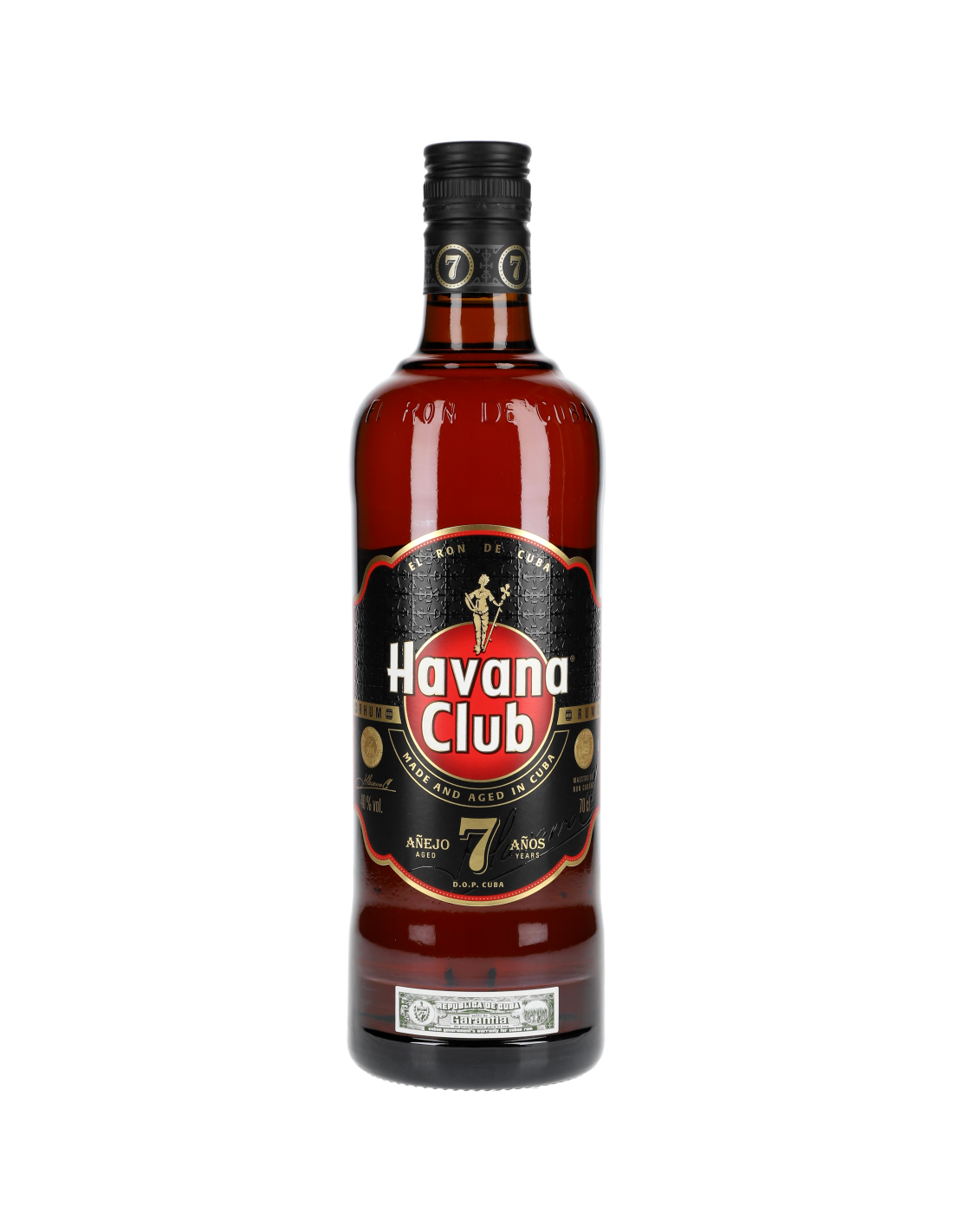 Le rhum Havana Club 7 ans est obtenu à partir de rhums vieillis au moins 7 ans en fûts de chêne. Ce ron d'une qualité remarquable représente l'excellence du savoir-faire rhumier cubain. Il est reconnu comme l'un des meileurs rhums vieillis au monde. Doté d'une belle robe acajou, ce rhum cubain détient un bouquet d'une grande délicatesse. Il est exceptionnellement riche et complexe, marqué par des notes de cacao, vanille, cèdre, tabac doux et fruits tropicaux. L'attaque en bouche est voluptueuse et fait preuve d'une grande douveur. Après l'attaque suit une explosion complexe de cacao raffiné, de vanille, de canne, de noisette et de fruits tropicaux caramélisés, soutenue par un arôme de chêne et d'épice tranchant et délicat. La finale est intense, ronde et veloutée en bouche, associant des notes complexes de vieillissement à une fraîcheur rappelant la canne à sucre.