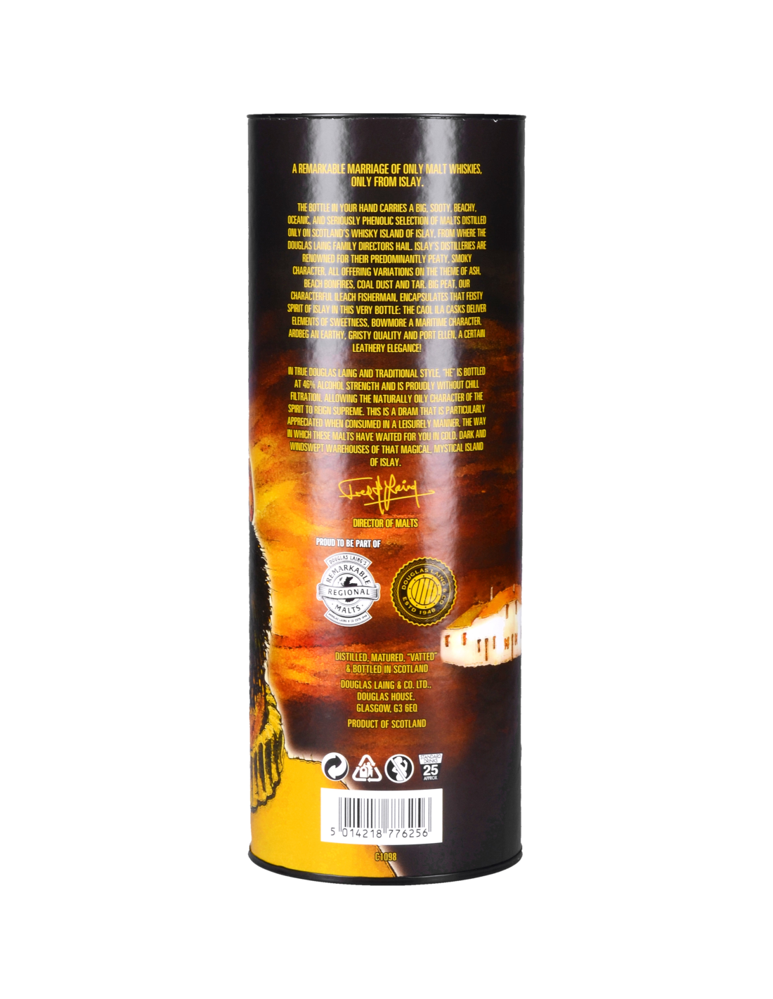 Profil très tourbé, fumé, camphre, clou de girofle, orge maltée grillée, hydrocarbure, menthol.